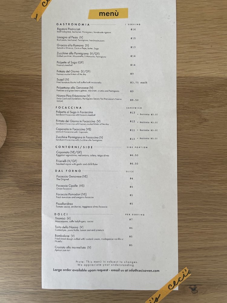 One of the highlights of Ceci’s Gastronomia is their Focaccina Sandwiches, which are filled with mouthwatering combinations such as Caponata Eggplant agrodolce, farmers market frittata, and Nonna's meatball. Each sandwich is served on fluffy focaccia bread, creating the perfect blend of textures and flavors.